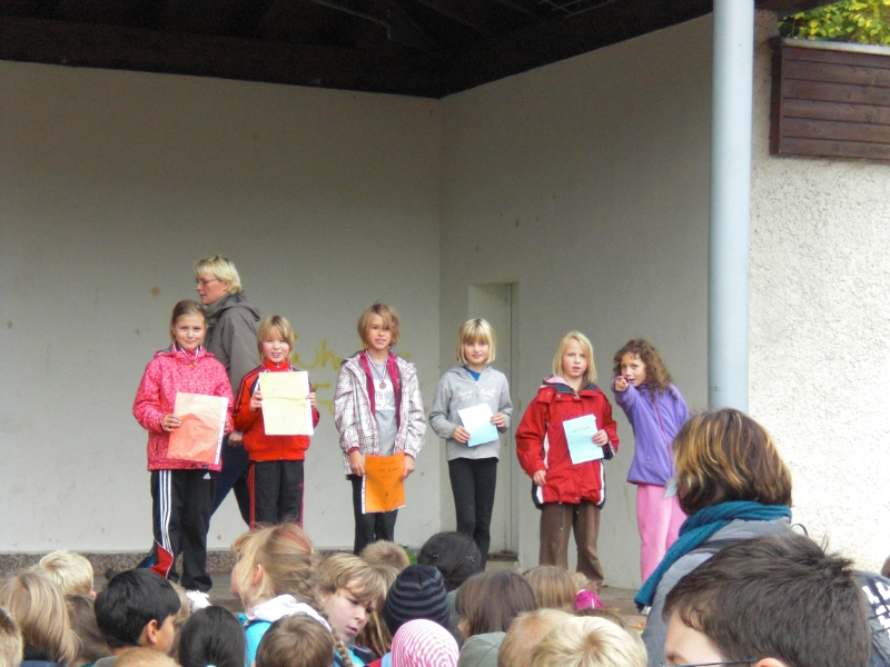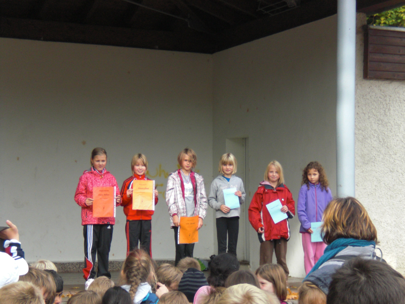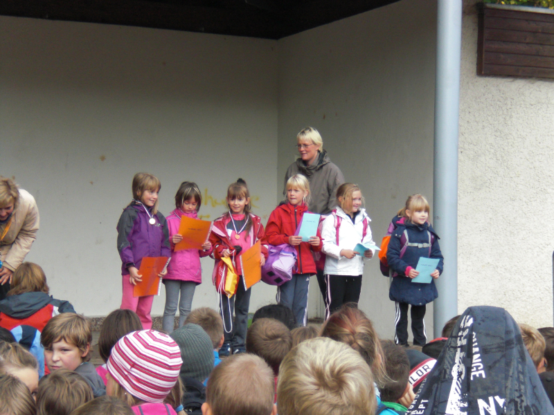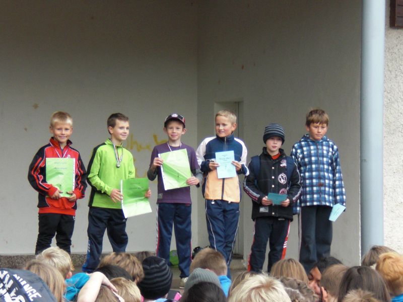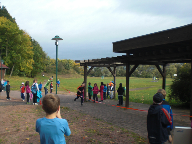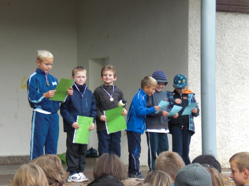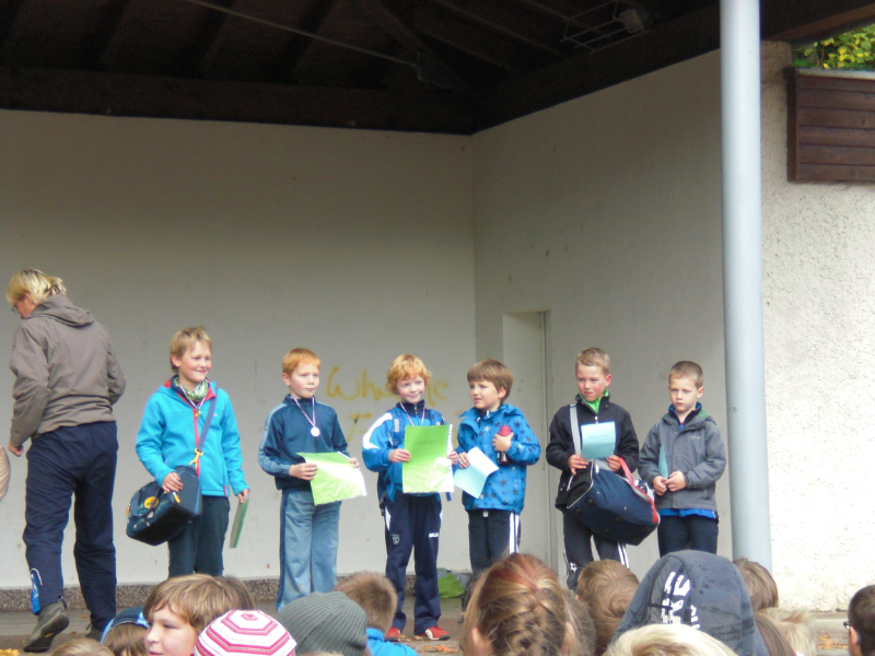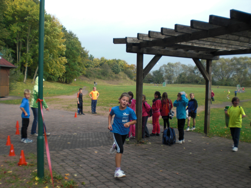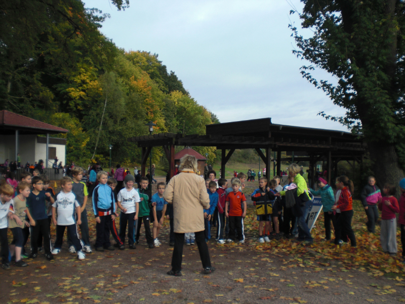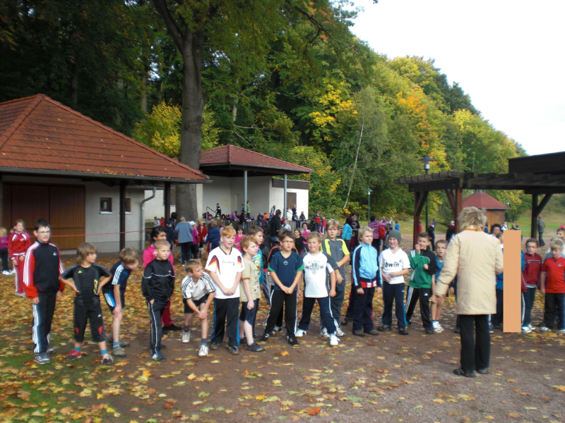Mit Beginn des Herbstes war es wieder soweit, die Schülerinnen und Schüler der Grundschule „Am Rehberg“ machten sich gemeinsam mit ihren Lehrerinnen auf den Weg zum Schlosspark in Wutha-Farnroda. Hier sollte in diesem Jahr unser Herbst- Crosslauf stattfinden. Wir freuten uns sehr, dass die Kindergärten „Anzius“ und „Bambino“ unserer Einladung zum gemeinsamen sportlichem Treiben gefolgt sind. Das Wetter meinte es gut mit uns, der Regen blieb in den Wolken und die Sonne schaute hin und wieder zu uns hinunter. Nach einer Eröffnung gingen die ersten Kinder an den Start. Zuerst waren die Kindergartenkinder dran und alle waren mit Begeisterung dabei. Die Sportlehrerinnen freuen sich jetzt schon darauf, wenn diese Kinder ihre Schüler werden. Danach waren die Kinder der 1.- 4. Klassen, aufgeteilt in Jungen und Mädchen, an der Reihe. Alle waren aufgeregt. Die Devise an diesem Tag lautete: Durchhalten und das Beste geben! Los ging es. Alle meisterten den Kurs mit Bravour. An der Strecke wurde jede Läuferin sowie jeder Läufer stürmisch angefeuert und am Ziel herzlich empfangen. Das trieb so manchen Teilnehmer zum Endspurt an. Nach den großartigen sportlichen Leistungen wurden die ersten 6 Platzierten jeder Klassenstufe mit einer Urkunde ausgezeichnet. Natürlich gab es auch für den ersten, zweiten und dritten Platz eine Gold-, Silber- und Bronzemedaille. Aber niemand ging an diesem Tag leer aus. Alle anderen Crossläufer erhielten Applaus und unsere Anerkennung. SPORT FREI !