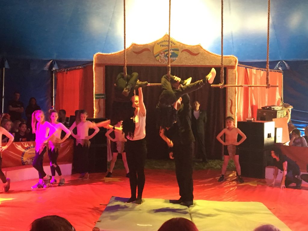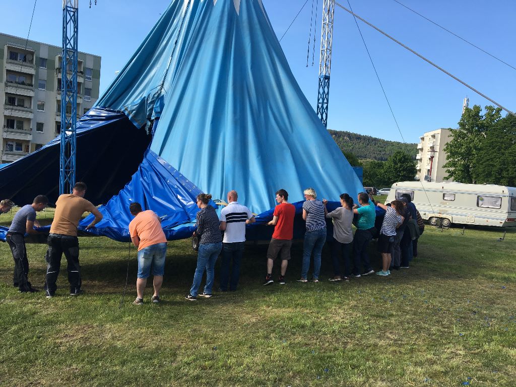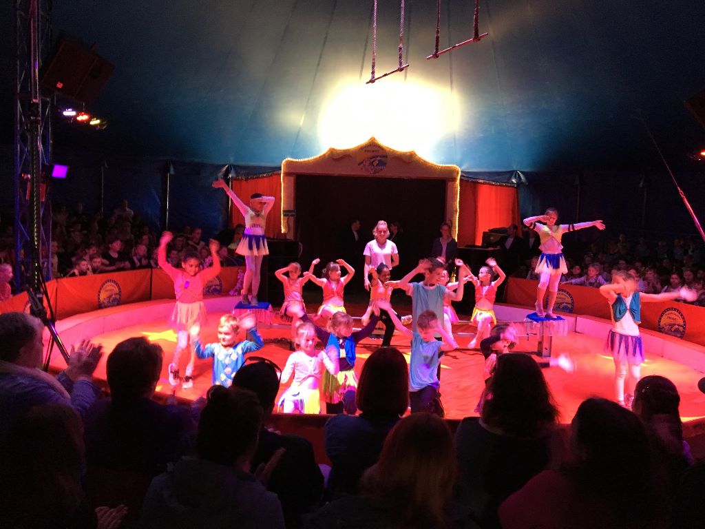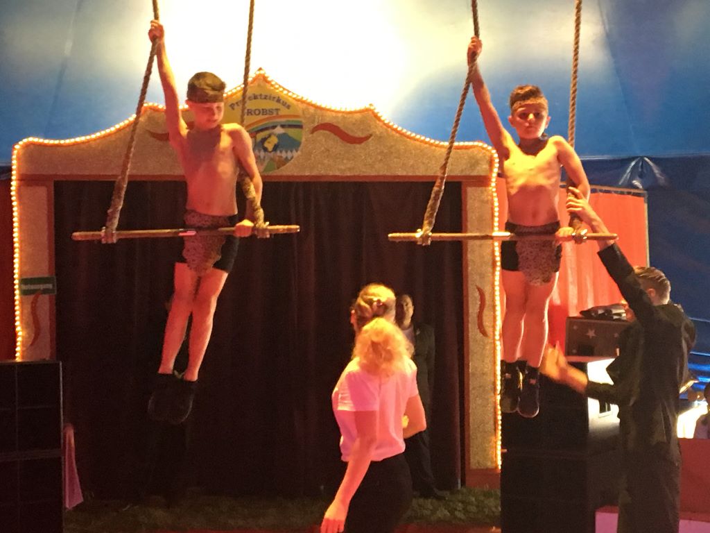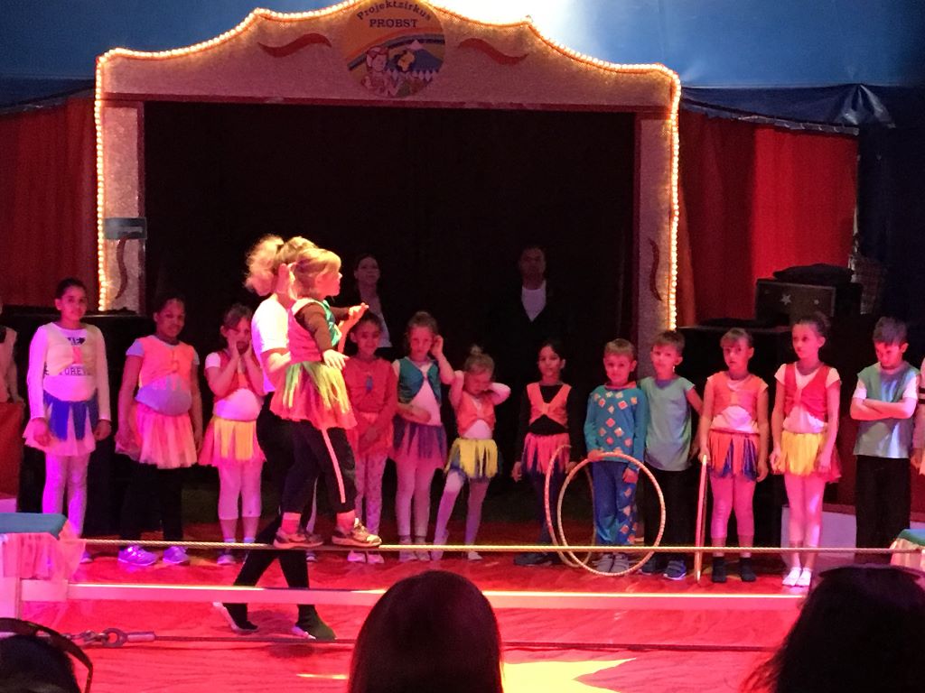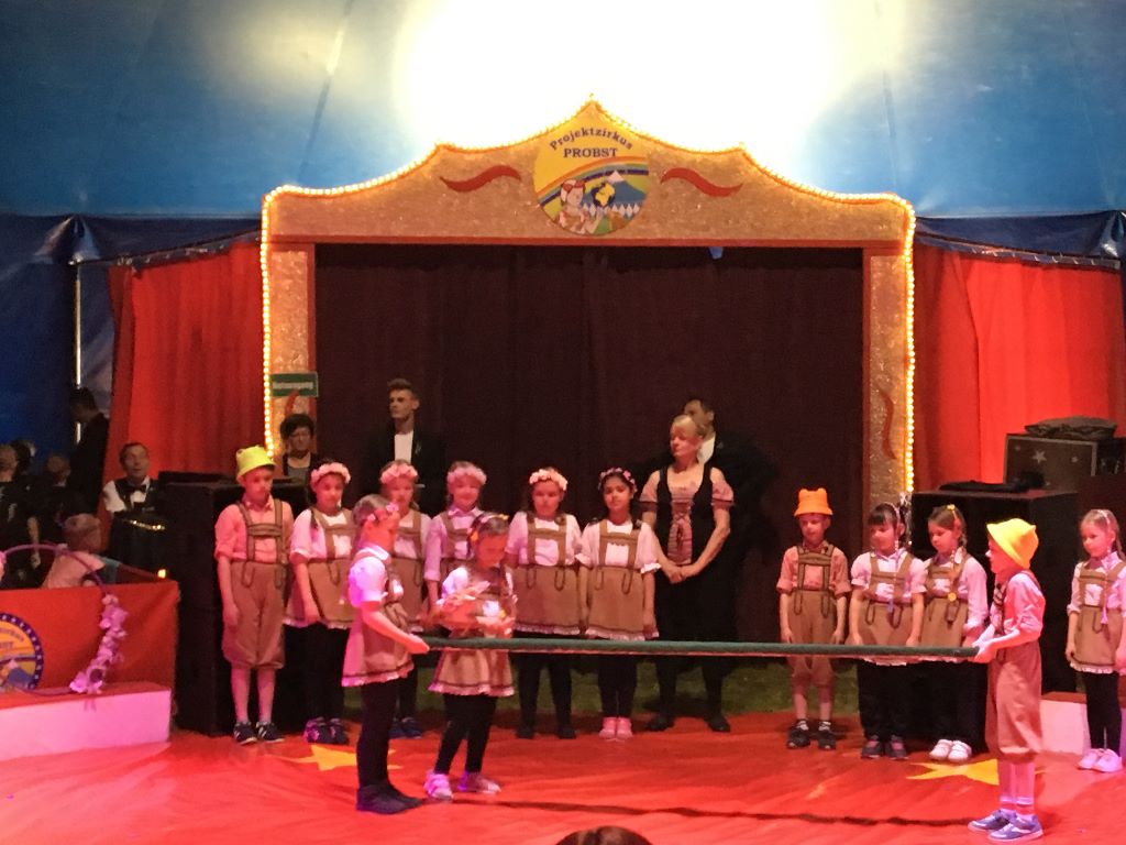Am Mittwoch reiste der Zirkus an. Mit Hilfe einiger Eltern stand innerhalb von zwei Stunden das Zirkuszelt auf der Wiese. Am nächsten Tag begannen für die Kinder Spaß und Arbeit im Zirkuszelt. Zuerst mit einer kleinen Vorstellung für die Kinder, dann mit der Feineinteilung der Gruppen. Und dann wurde mit den Zirkustrainern gearbeitet. Sie haben viel von unseren Kindern verlangt – und unsere Kinder haben wirklich tolle Leistungen erbracht in der „größten Show der Welt“!