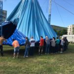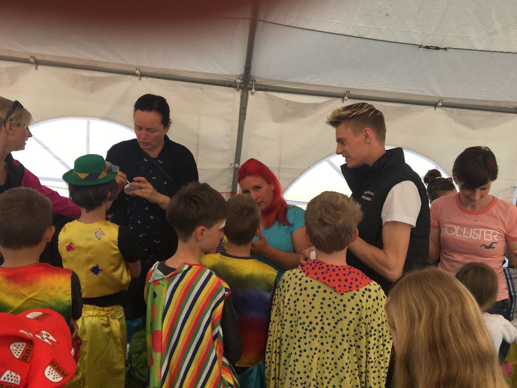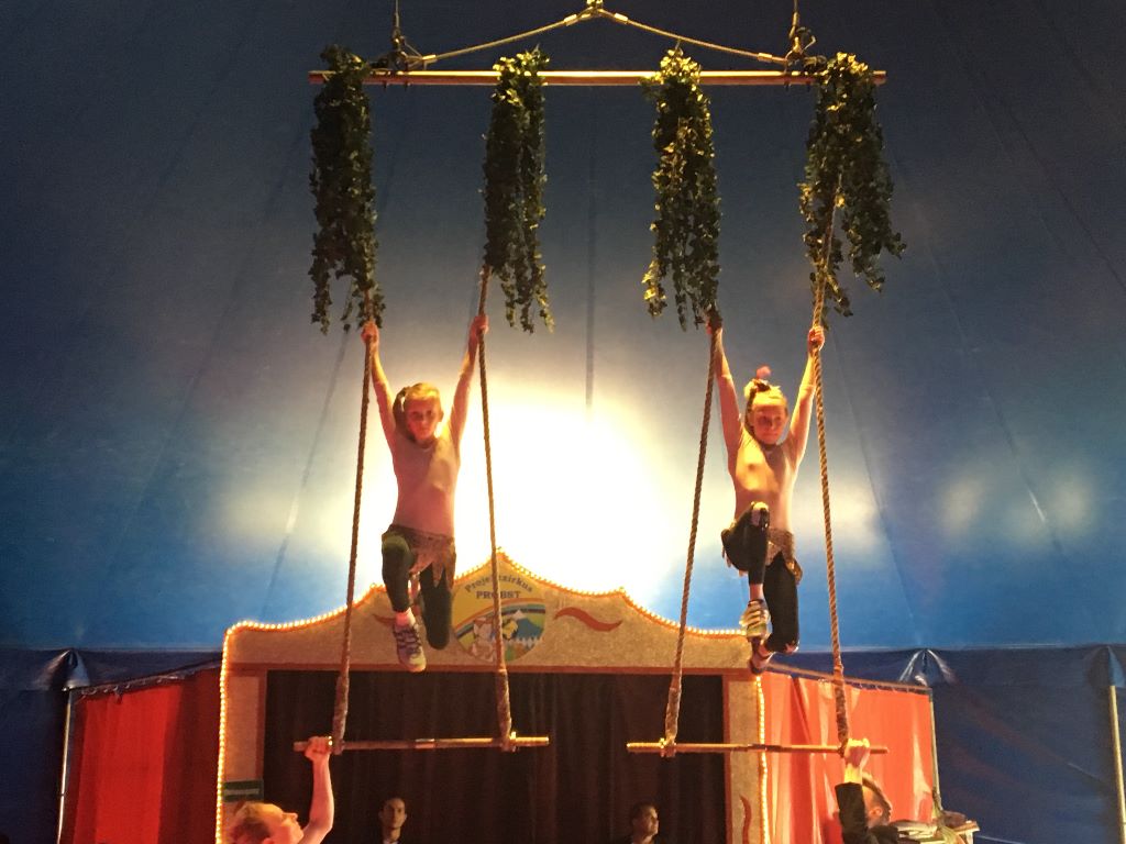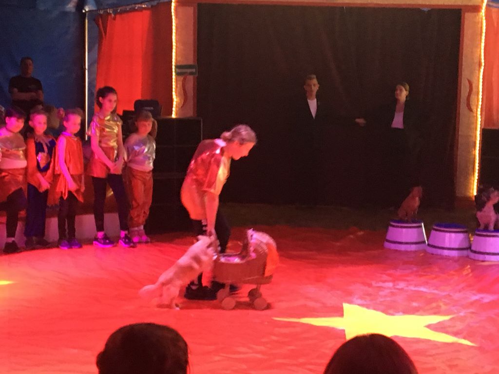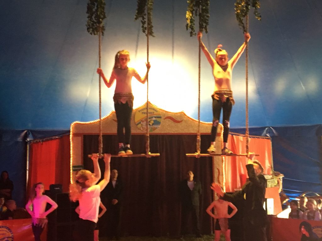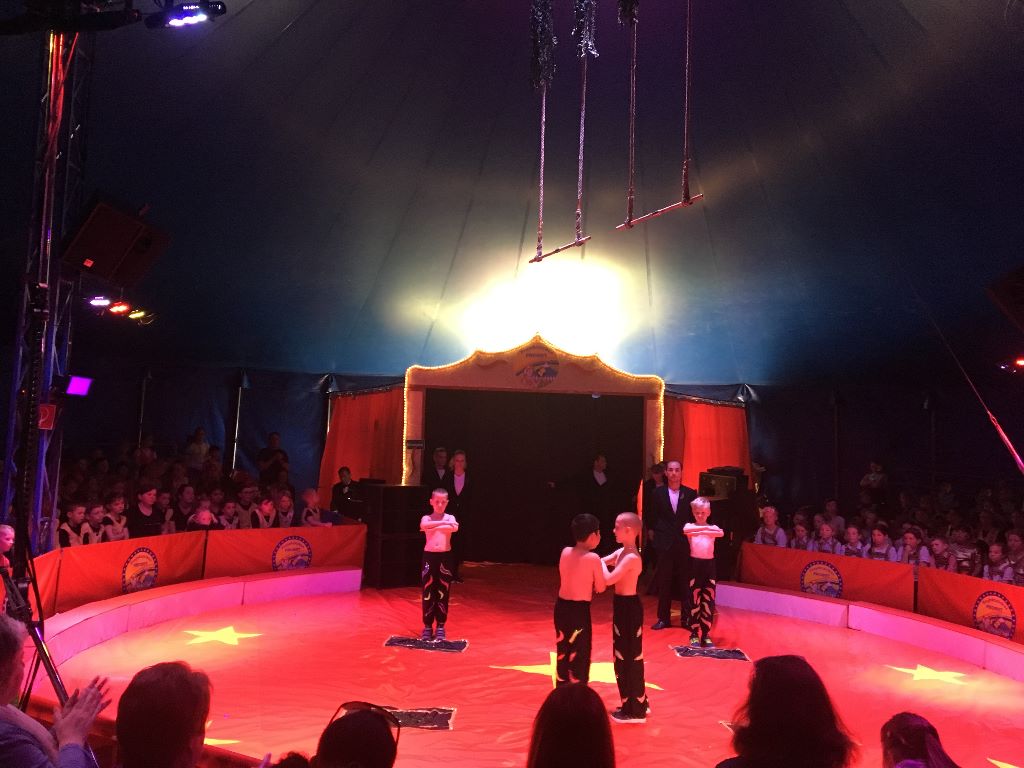 Am Mittwoch reiste der Zirkus an. Mit Hilfe einiger Eltern stand innerhalb von zwei Stunden das Zirkuszelt auf der Wiese. Am nächsten Tag begannen für die Kinder Spaß und Arbeit im Zirkuszelt. Zuerst mit einer kleinen Vorstellung für die Kinder, dann mit der Feineinteilung der Gruppen. Und dann wurde mit den Zirkustrainern gearbeitet. Sie haben viel von unseren Kindern verlangt – und unsere Kinder haben wirklich tolle Leistungen erbracht in der „größten Show der Welt“!