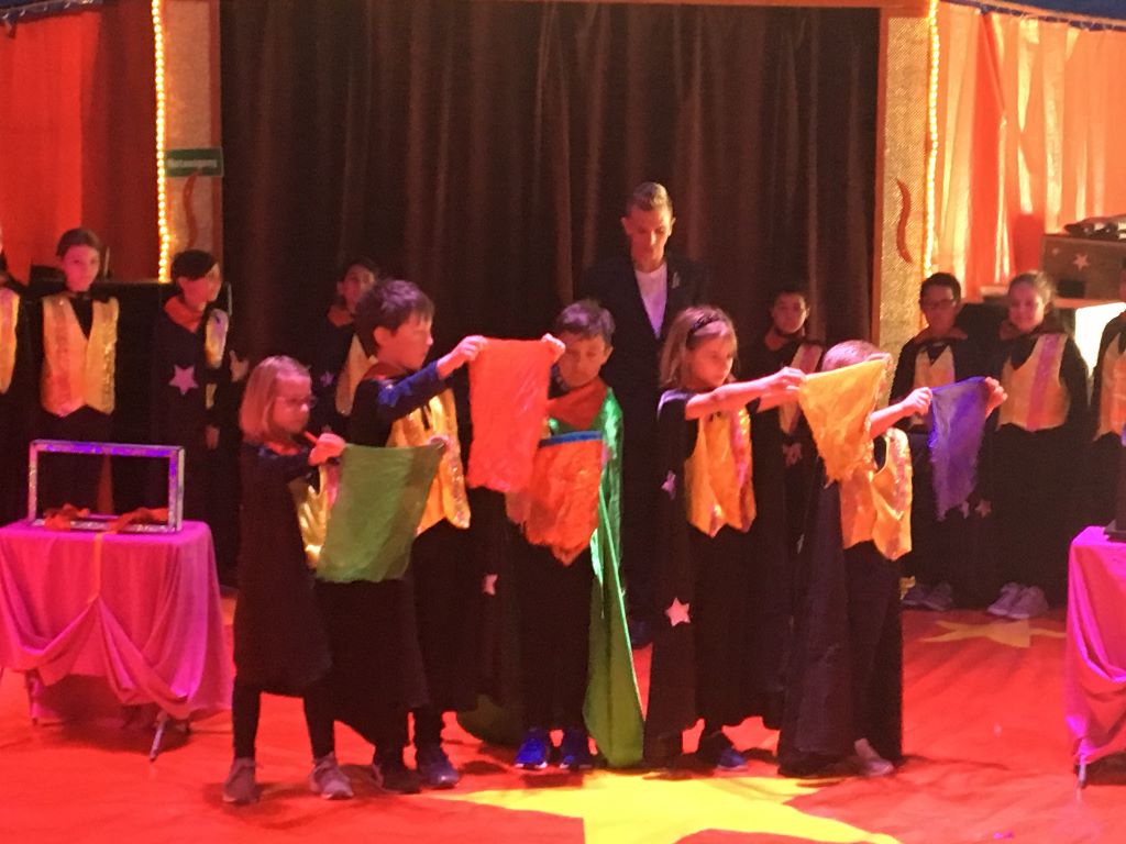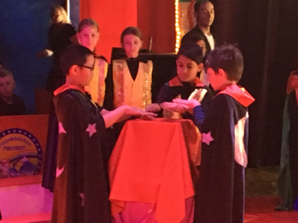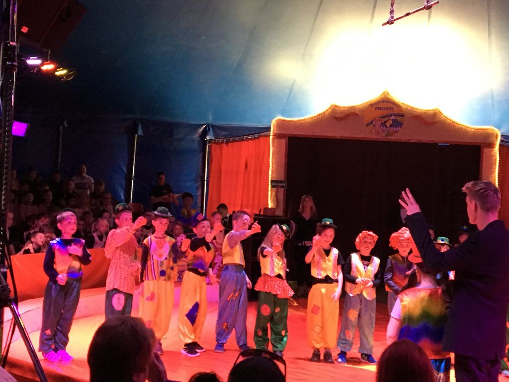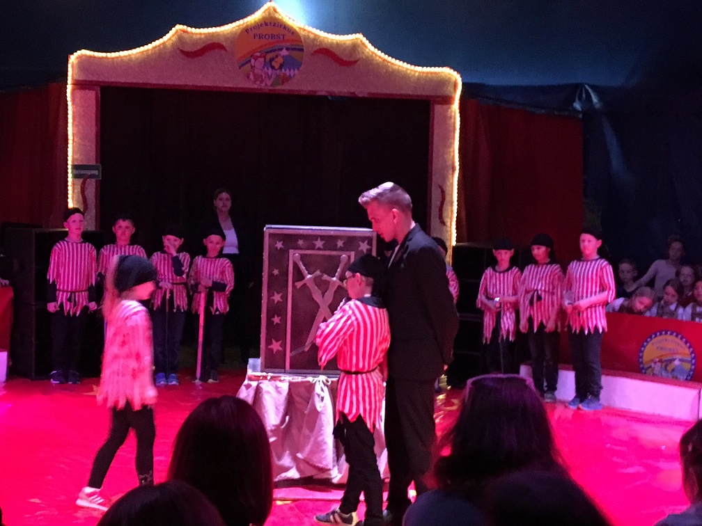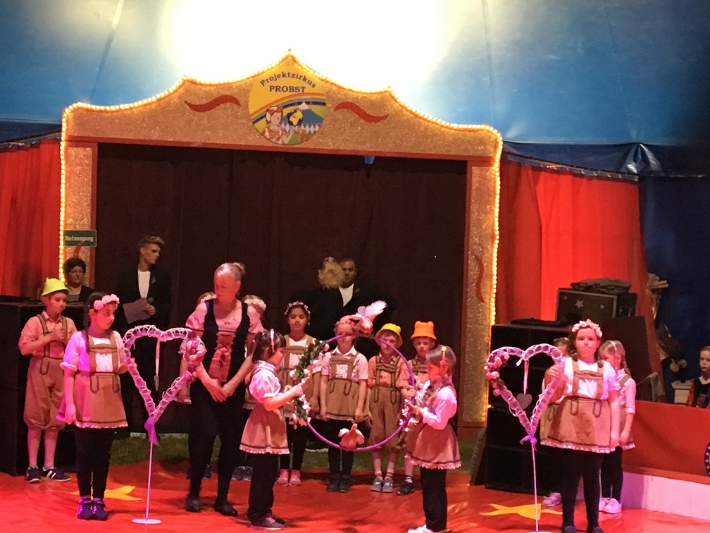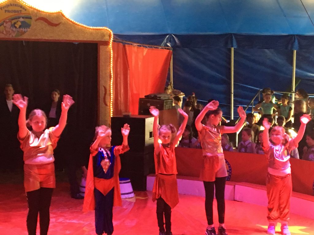 In den Proben ging natürlich so manches noch schief – logisch bei der kurzen Probenzeit. Aber schon bei der Generalprobe am Freitag war die Stimmung bestens. Als dann zu den Vorstellungen noch Musik, Lichteffekte und natürlich ein äußerst gespanntes Publikum hinzukamen, war es wirklich wunderschön zu sehen, wie aus unseren Schulkindern quasi über Nacht echte Zirkusprinzessinnen, Artisten und Zauberer geworden waren. Überall sah man in stolze und strahlende Gesichter, sowohl bei den Kindern als auch im Publikum. Jedes Kind hat seinen Platz und seine Aufgabe gefunden, und alle haben Großartiges geleistet. In unserer Schulgemeinschaft wirkt unser gemeinsames Zirkuserlebnis immer noch nach.