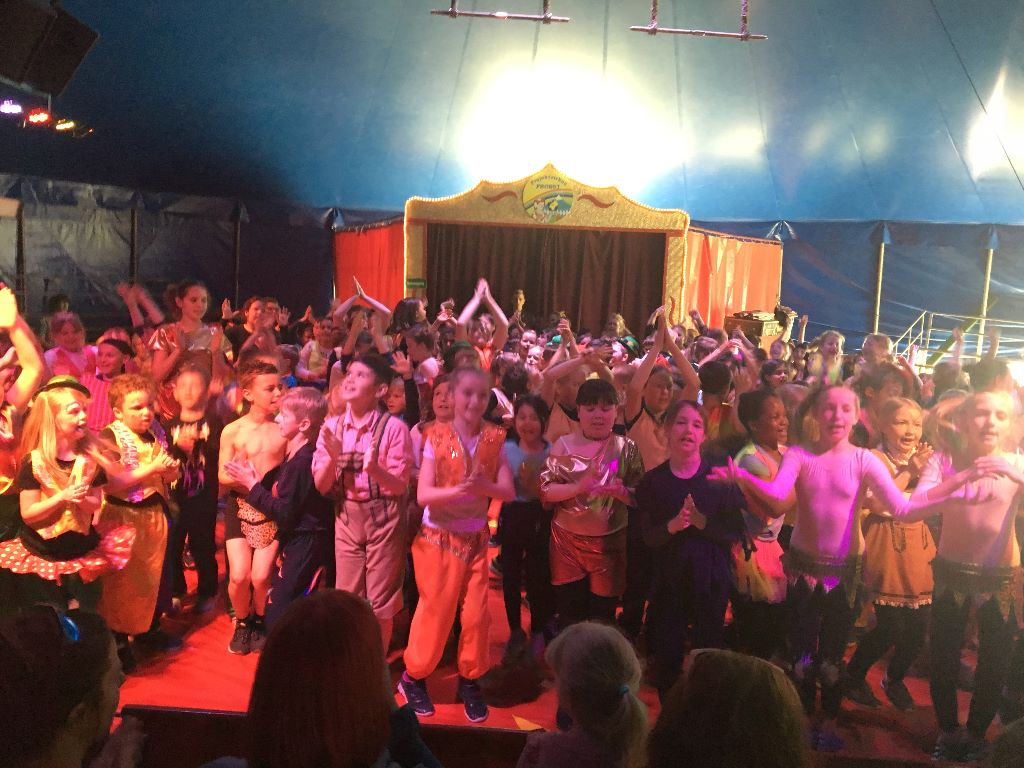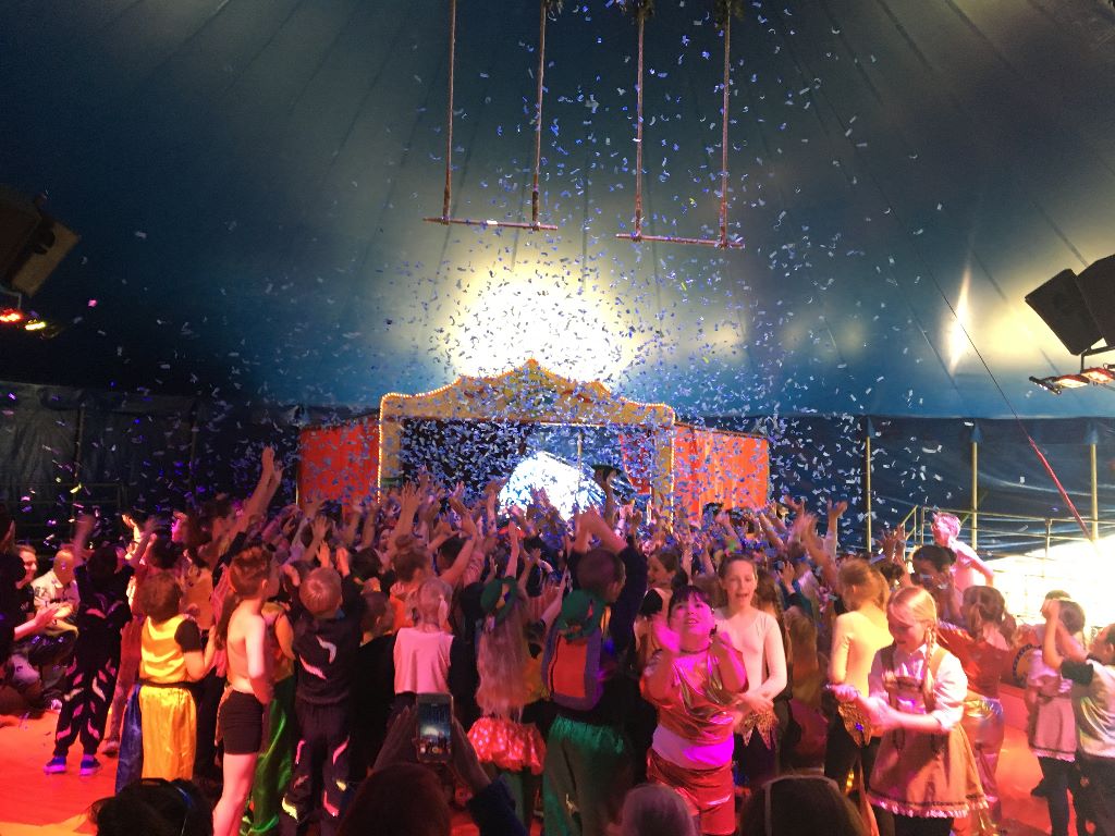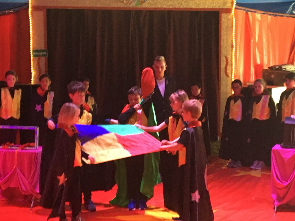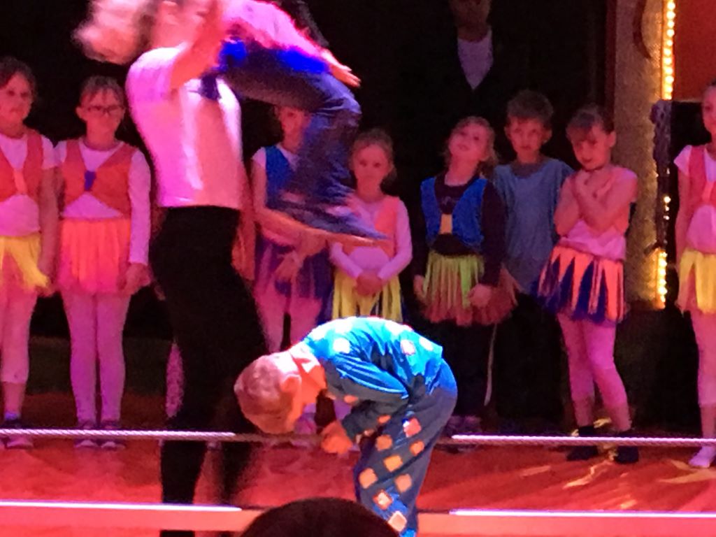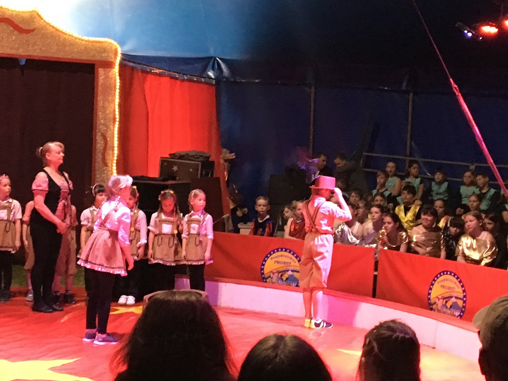 In den Proben ging natürlich so manches noch schief – logisch bei der kurzen Probenzeit. Aber schon bei der Generalprobe am Freitag war die Stimmung bestens. Als dann zu den Vorstellungen noch Musik, Lichteffekte und natürlich ein äußerst gespanntes Publikum hinzukamen, war es wirklich wunderschön zu sehen, wie aus unseren Schulkindern quasi über Nacht echte Zirkusprinzessinnen, Artisten und Zauberer geworden waren. Überall sah man in stolze und strahlende Gesichter, sowohl bei den Kindern als auch im Publikum. Jedes Kind hat seinen Platz und seine Aufgabe gefunden, und alle haben Großartiges geleistet. In unserer Schulgemeinschaft wirkt unser gemeinsames Zirkuserlebnis immer noch nach.