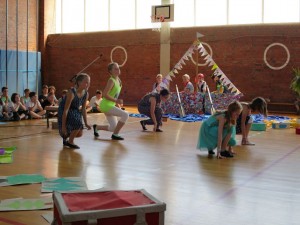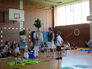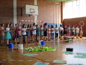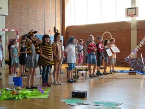 Doch vor dem Abschied stand erst einmal das Programm, dass die Viertklässler mit ihren Lehrerinnen Frau Hasenstein, Frau Schmidt und Frau Nolte-Herrmann vorbereitet hatten. Das war auch in diesem Jahr wieder sehr vielseitig und beinhaltete außer Liedern und Theaterstücken auch Tänze und Vorspiele mit Instrumenten. Da konnten sich alle Schüler/innen der Schule und auch die zahlreich erschienen Eltern und Großeltern davon überzeugen, dass die Talente der Kinder während der Grundschulzeit gut entwickelt und gefördert werden konnten. Sowohl Schulleiterin Susanne Köhler als auch Bürgermeister Torsten Gieß kamen zu dem Schluss: Um diesen Jahrgang muss uns nicht bange sein, die Kinder werden alle sehr gut ihren Weg machen!