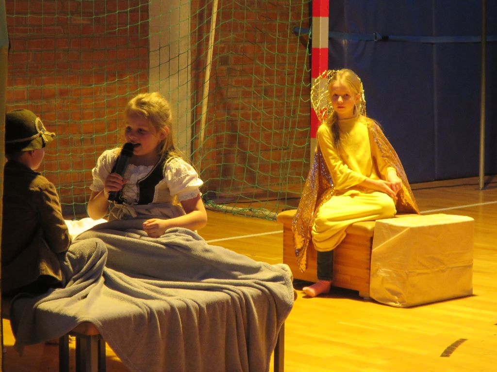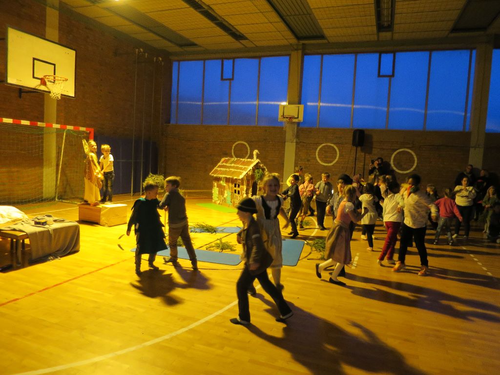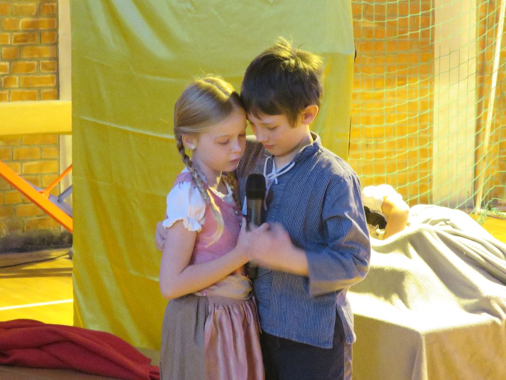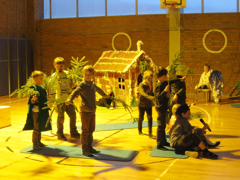 Beim diesjährigen Weihnachtsmarkt unserer Schule war zwar trotz des Datums 06.12. leider kein Nikolaus zu sehen (wahrscheinlich wurde der dringend bei einer der vielen anderen Veranstaltungen zu diesem Termin gebraucht), aber dafür waren Hänsel und Gretel anwesend. Die Klassen 1a und 1b führten das Märchen unter der Leitung von Frau Krumrich und Frau Schmidt in einer sehr anspruchsvollen Version auf. Da mussten von den Kindern Texte und Gesten und Wege und Lieder gelernt und dann auch noch gekonnt dargeboten werden. Das gelang aber so gut, dass auch der Nikolaus ganz sicher zufrieden gewesen wäre.