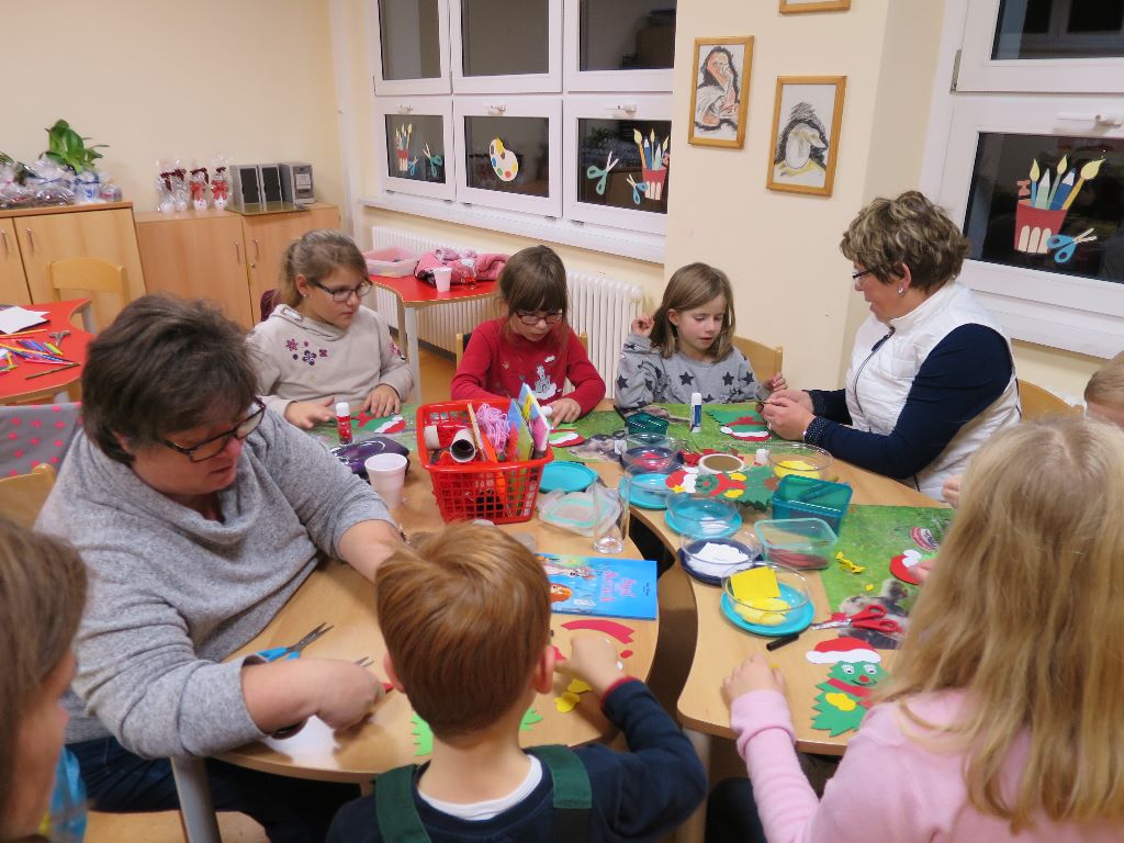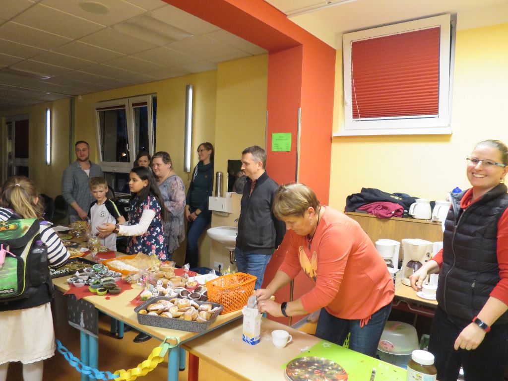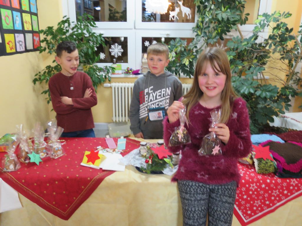 Auch die anderen Klassen hatten sich zusammen mit ihren Lehrer/innen und Eltern viel Mühe gegeben. Es gab verschiedene Verkaufsstände, Bastelecken, leckere Kuchen, eine Fotobox für Nikolausfotos und natürlich wie immer Bratwürste vom Förderverein. Am Grill stand aber ausnahmsweise mit Anja Stolz, Roberto Kaiser und Christopher Börner das „Team Grundschule“.
