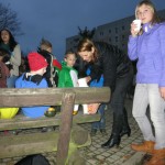 Damit auch für das leibliche Wohl gesorgt war, bot der Förderverein Bratwürste, Glühwein und Kinderpunsch an. Alles fand bei bester Stimmung reißenden Absatz, bis sich dann mit Beginn der Dämmerung der Laternenumzug formierte. Die Kinder hatten dafür in der Schule neue Laternen gebastelt, die sie nun stolz in einem langen Zug durch das Wohngebiet trugen. Fachkundig begleitet wurden sie dabei von der Freiwilligen Feuerwehr.