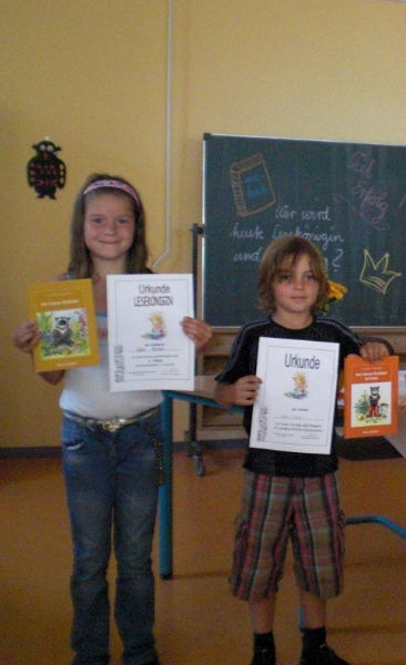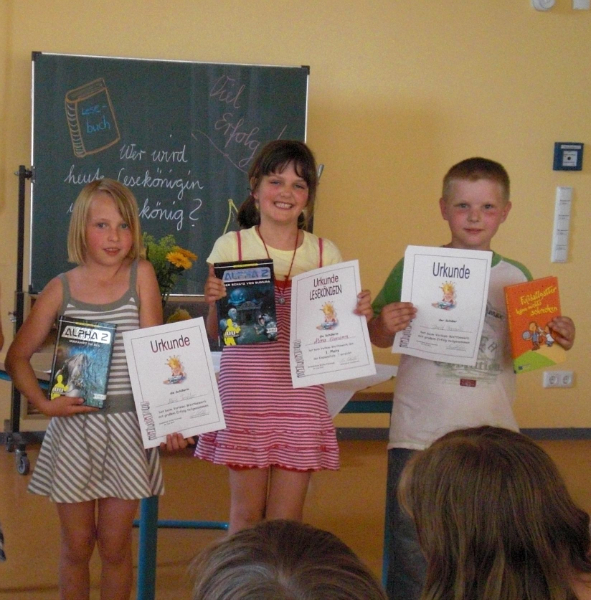 Stolz können wir berichten, dass sich auch in diesem Schuljahr 2011/2012 zahlreiche Schülerinnen und Schüler an unserem Lesewettbewerb beteiligten. Zuerst wurden die tollsten „Lesekönner“ in den einzelnen Klassen ermittelt. Die besten Leser jeder Klasse stellten sich anschließend der Wahl zur Lesekönigin oder zum Lesekönig. Am 29.Juni war es dann endlich soweit. Vor vielen Zuhörern zeigten sie ihr Können. Die Jury hatte es sichtlich schwer aus den fantastischen Vorträgen, den besten Leser zu bestimmen. Am Ende wurden: