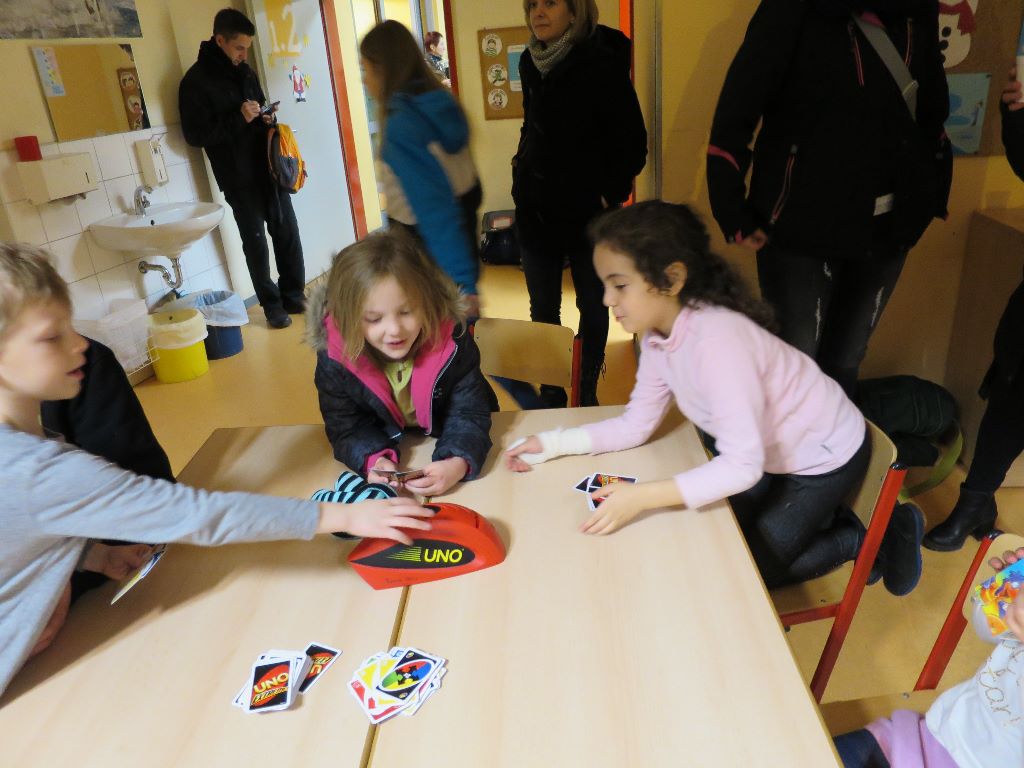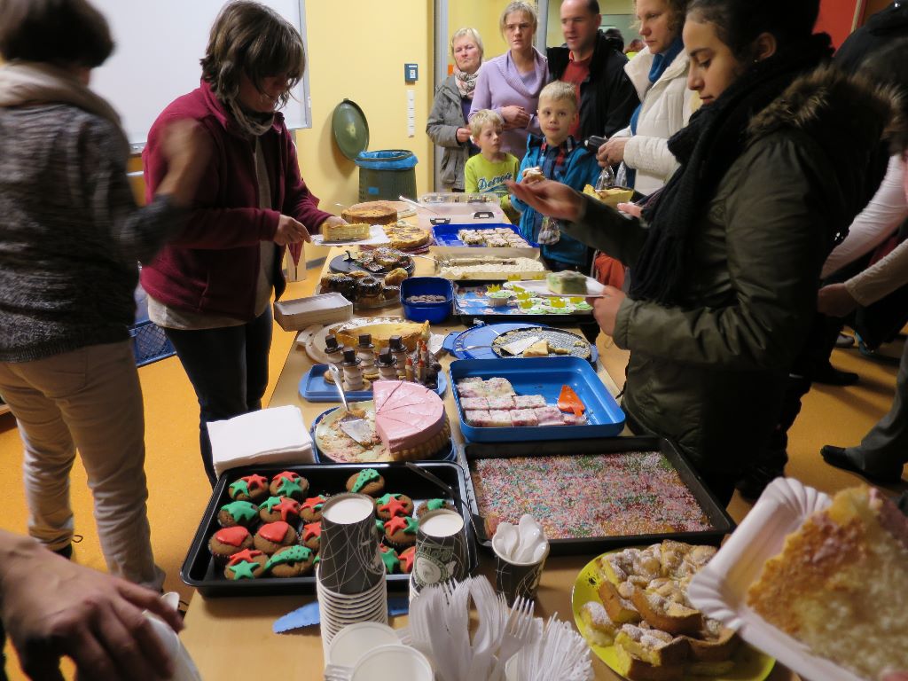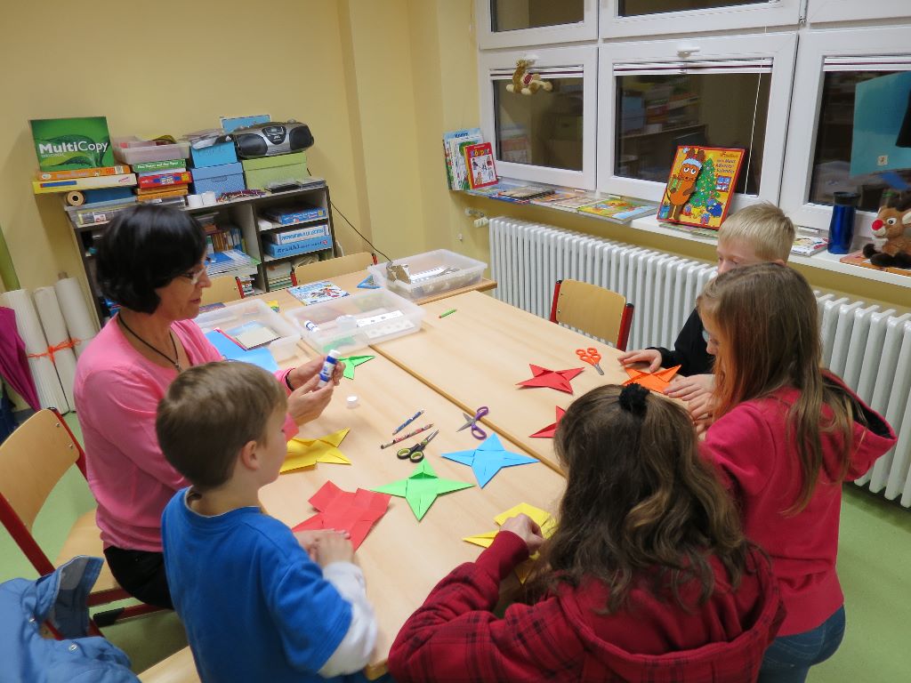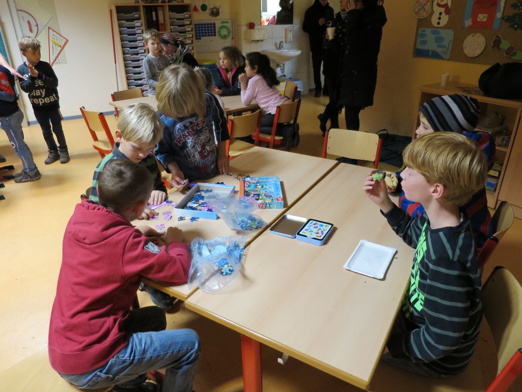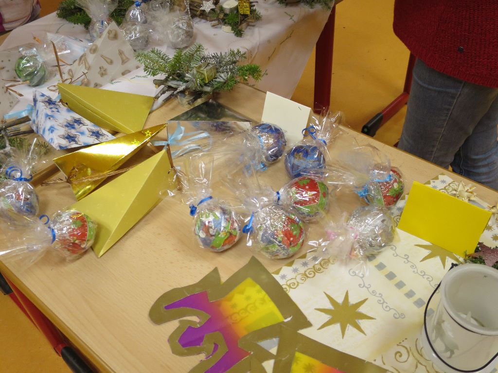 Beim Weihnachtsmarkt in der Grundschule wurde am Freitag trotz Regenwetter in bester Weihnachtsstimmung gefeiert. Zunächst brachten die Klassen 2a und 2b die Gäste mit Großpapa Erwin (Philipp Hornaff) und Großmutter Mariannchen (Lisann Bätzel), die sich mit Liedern und Gedichten an frühere Weihnachten erinnerten, in Stimmung. Danach konnten an den zahlreichen Ständen der einzelnen Klassen hübsche Weihnachtsgeschenke oder begehrte Flohmarktschnäppchen erstanden werden. Auch die Stationen zum Basteln und Spielen wurden sehr gut angenommen. Für die kulinarischen Genüsse war mit einem riesigen Kuchenangebot und den wie immer schmackhaften Bratwürsten vom Förderverein bestens gesorgt. Die Schule bedankt sich herzlich bei allen Beteiligten!