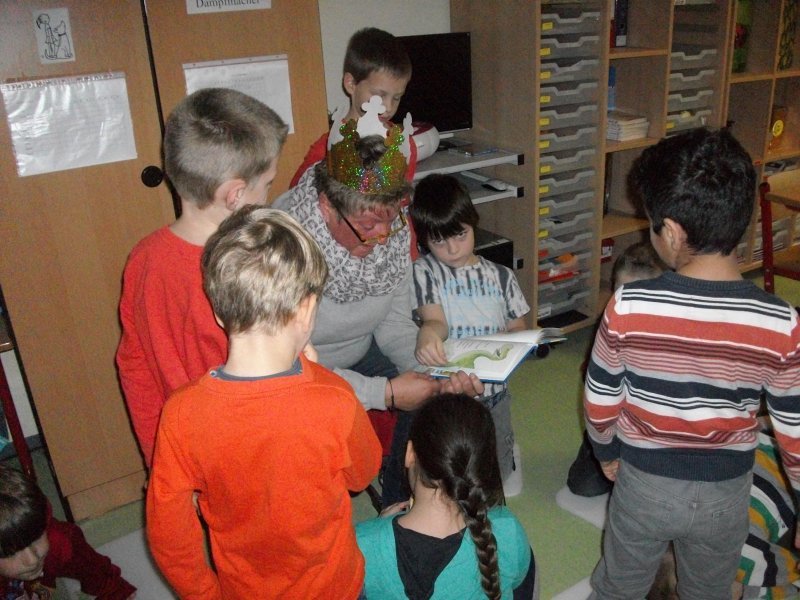 „ Max der Unglücksrabe“ von Walter Wippersberg wurde in der Klasse 3a gelesen. Ein lustiges Buch, indem man erfährt, dass auch ein Pechvogel ein Glückspilz sein kann. Natürlich dürfen an einem Vorlesetag die Märchen nicht fehlen. Die Schüler der Klasse 3b lasen sich gegenseitig ihre Lieblingsmärchen vor und konnten ihr Wissen in einem Quiz unter Beweis stellen. Das Thema Weihnachten wurde in den Klassen 4a und 4b behandelt. Hier wurde das Buch „Lasse und die verrückte Weihnachtswette“, welches mit viel Witz und Humor, auch den eigentlichen Sinn von Weihnachten beleuchtet, von den Lehrerinnen vorgestellt und der Anfang vorgelesen. In den nächsten Tagen wird immer ein Schüler ein Teil der Geschichte weiter vorlesen. So werden sie bis zu den Weihnachtsferien herausgefunden haben, was es mit der verrückten Wette auf sich hat. Den Schülern der Klasse 4c wurde die wohl beliebteste Schriftstellerin bei Kindern näher gebracht. Sie bekamen einen der lustigsten Streiche und Missgeschicke vorgelesen, „Michel in der Suppenschüssel“.