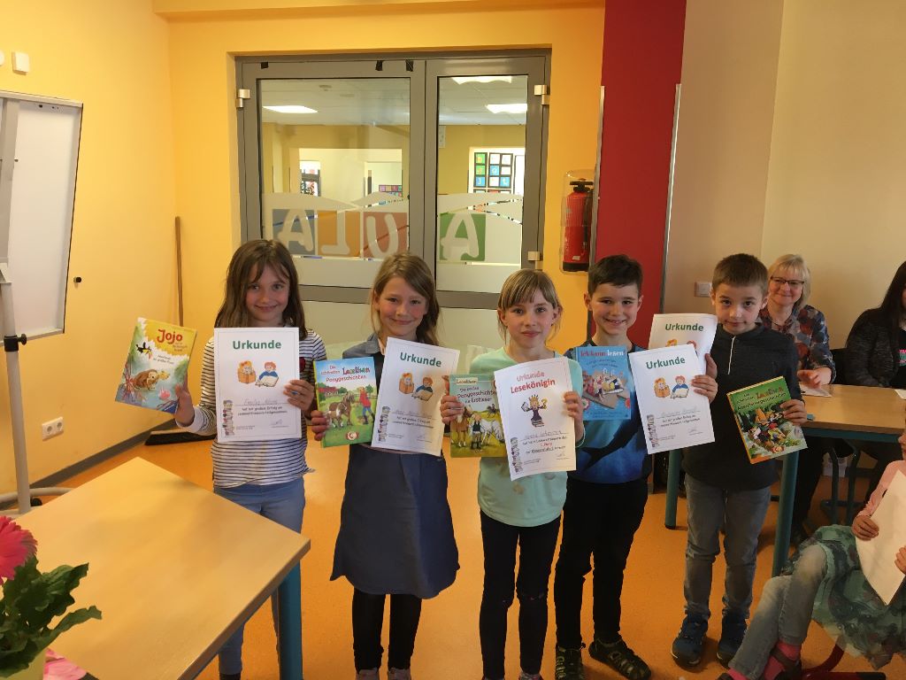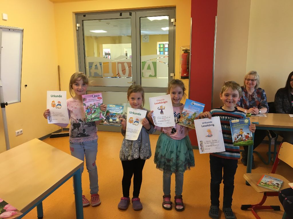 Durchweg alle Kinder haben eine ganz tolle Leistung erbracht! Die Jury, bestehend aus den ehemaligen Lehrerinnen Frau Schmidt und Frau Sieber, Mira Birkner und Sarah Jach von der Regelschule sowie Frau Köhler und Frau Krug, musste lange und intensiv diskutieren, doch schließlich standen alle Lesekönniginnen und Lesekönige fest. Wir gratulieren allen Kindern ganz herzlich!
